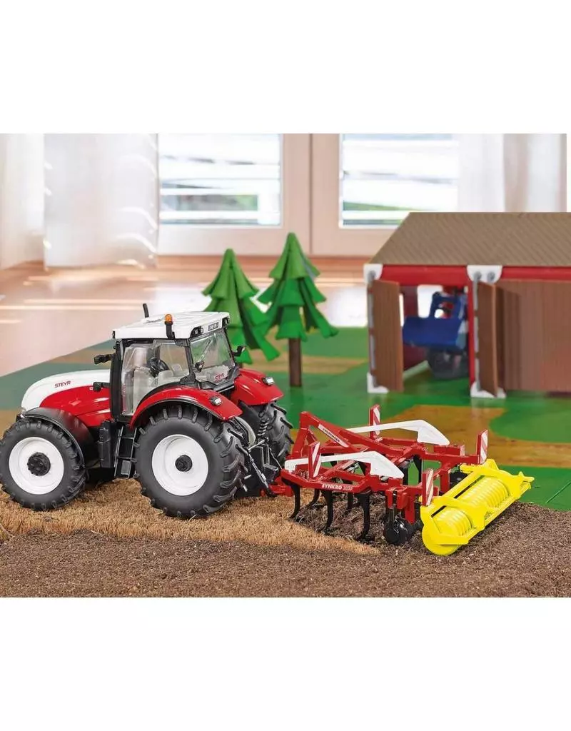 Het model Synkro van het Oostenrijkse traditiebedrijf Pöttinger is een van de actueelste grondbewerkingsmachines op de markt. De als origineel 3 meter brede cultivator met metalen frame is behalve de tanden uitgerust met een draaibare packerwals. Het in opvallende kleuren gelakte model kan zonder problemen achter SIKU-tractoren op de schaal 1:32 worden gehangen.